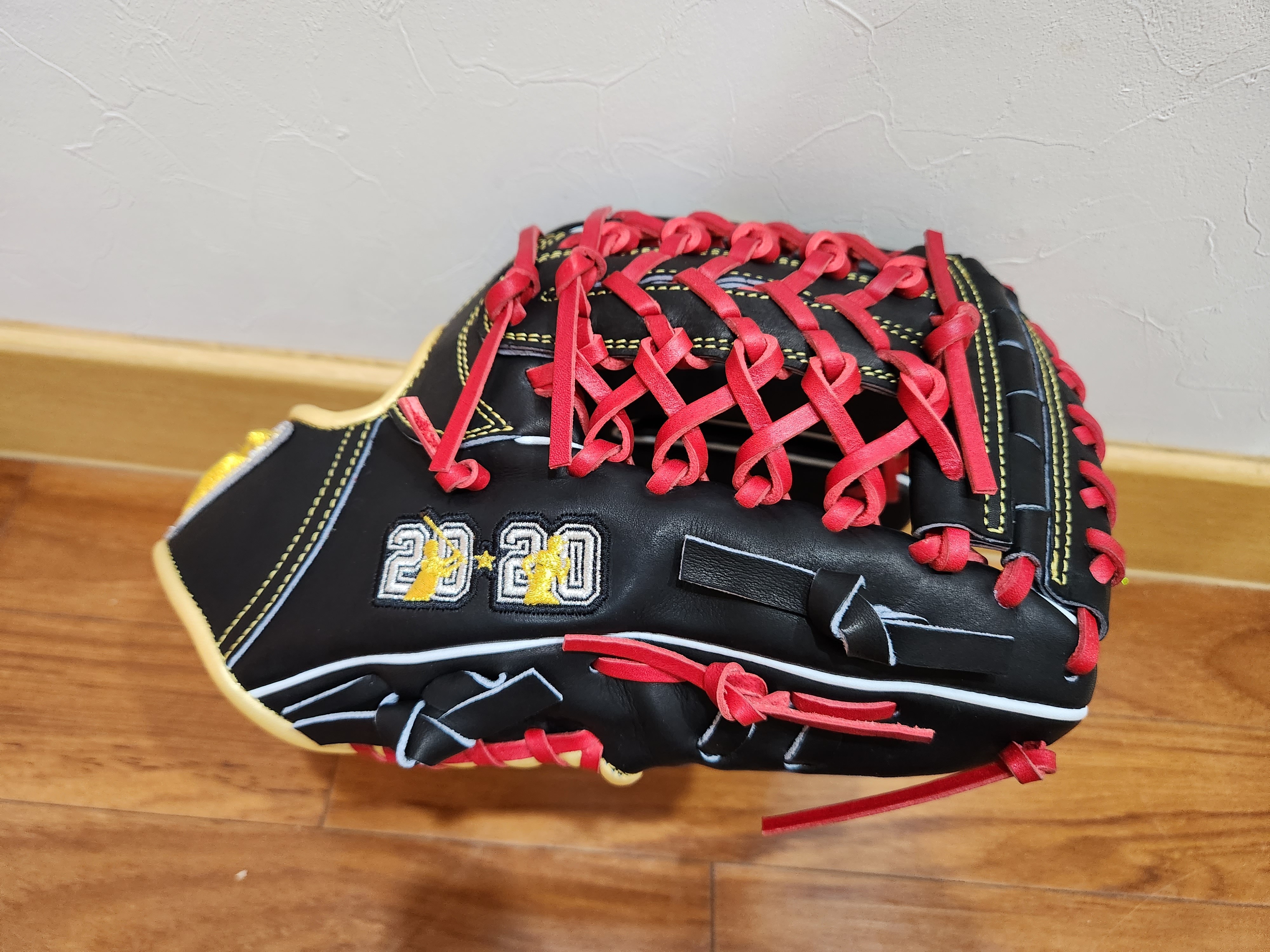 20-20 기념 자수가 엄지에 새겨져 있다.