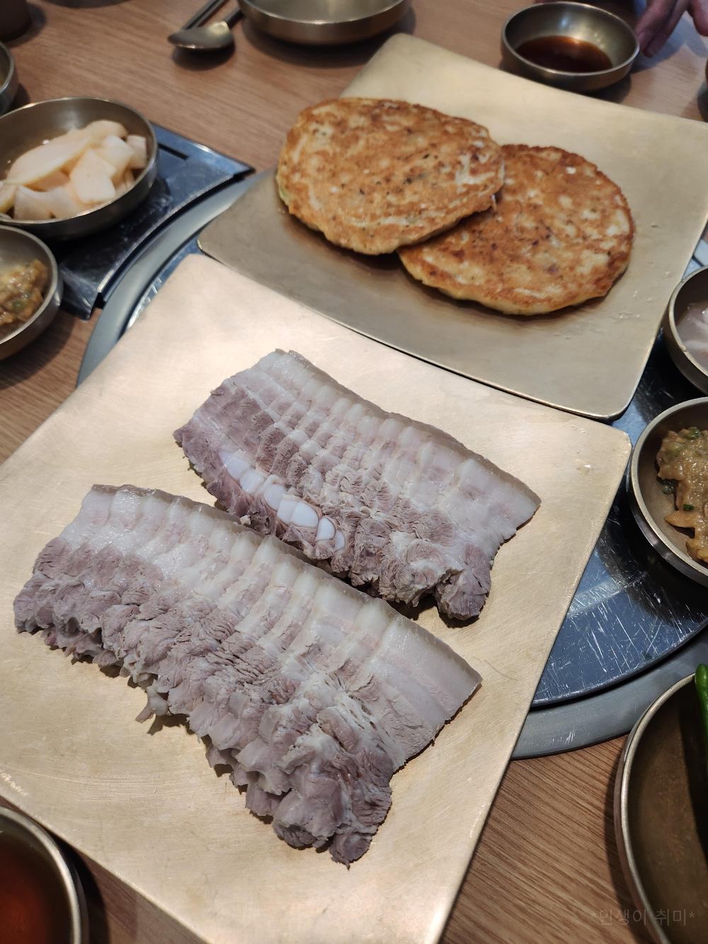 수육에 녹두전.