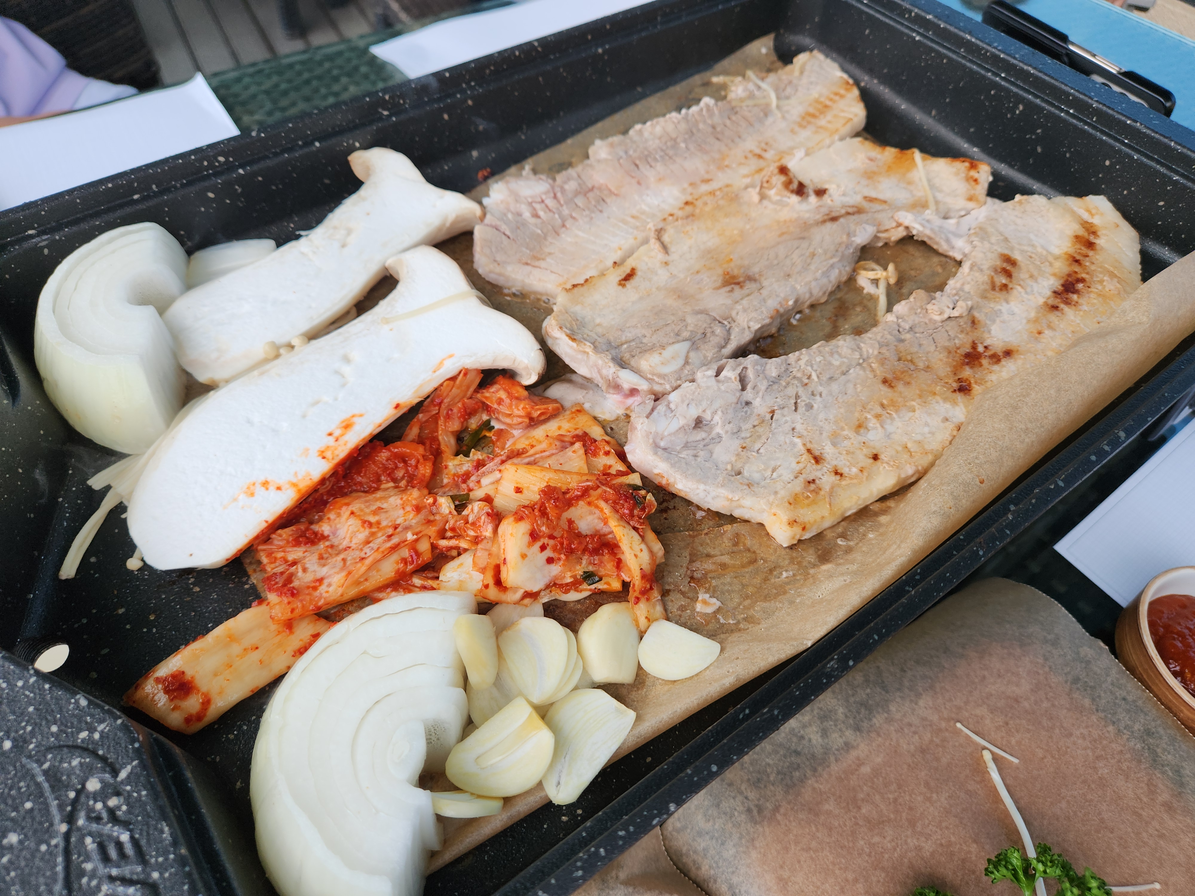 야채랑 김치도 구워야지..