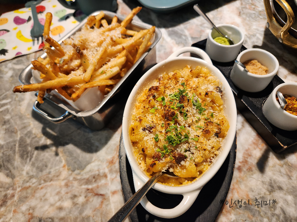 맥앤 치즈와 트러플 감자튀김