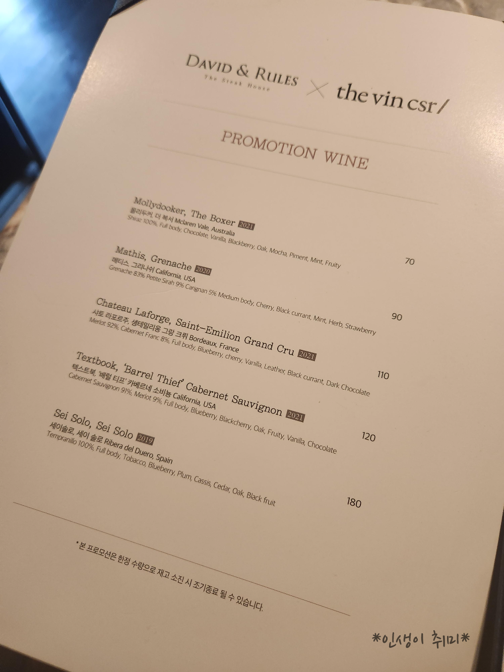 마지막이니까 와인도 한잔. 콜키지는 5만원