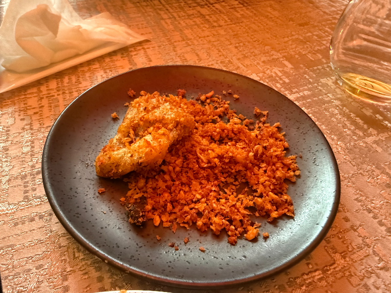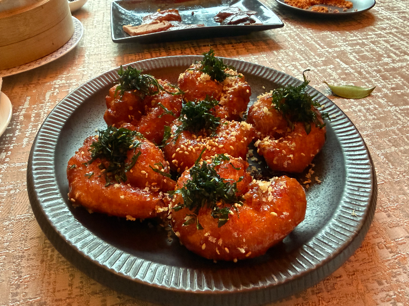 새우 살을 빵 사이에 넣고 바삭하게 튀긴 건데, 겉은 크런치하고 안에 새우가 탱탱했어요.