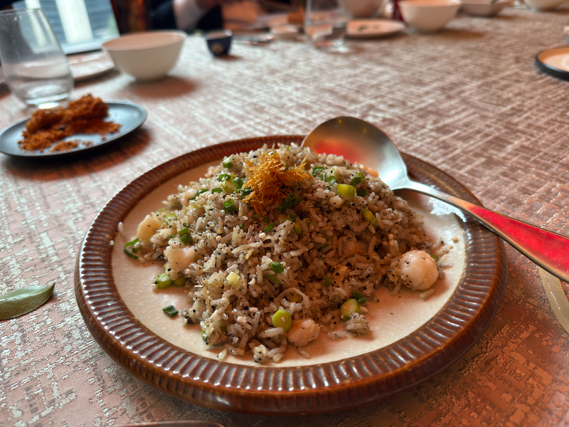 하나는 멸치 볶음밥인데, 관자랑 파가 들어있고 밥알 사이사이에 잔멸치가 섞여 있어요.