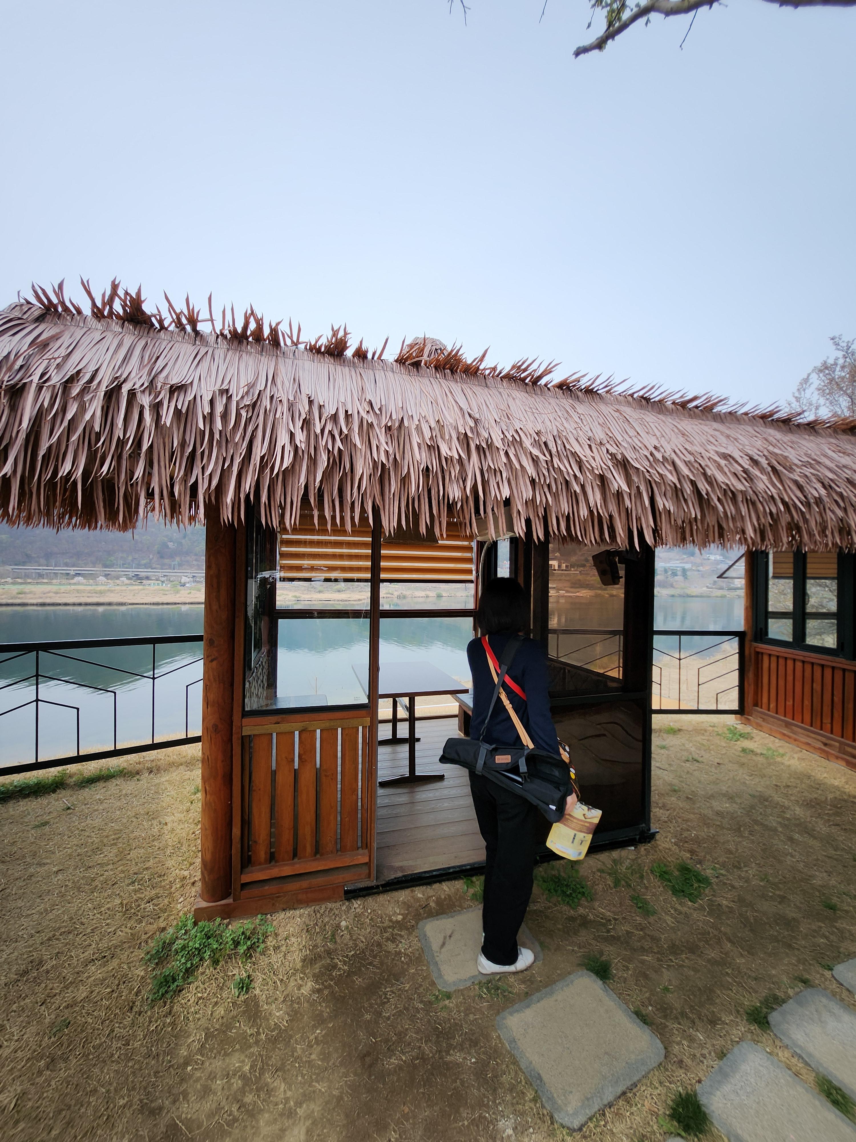 강을 끼고 카페가 있다.