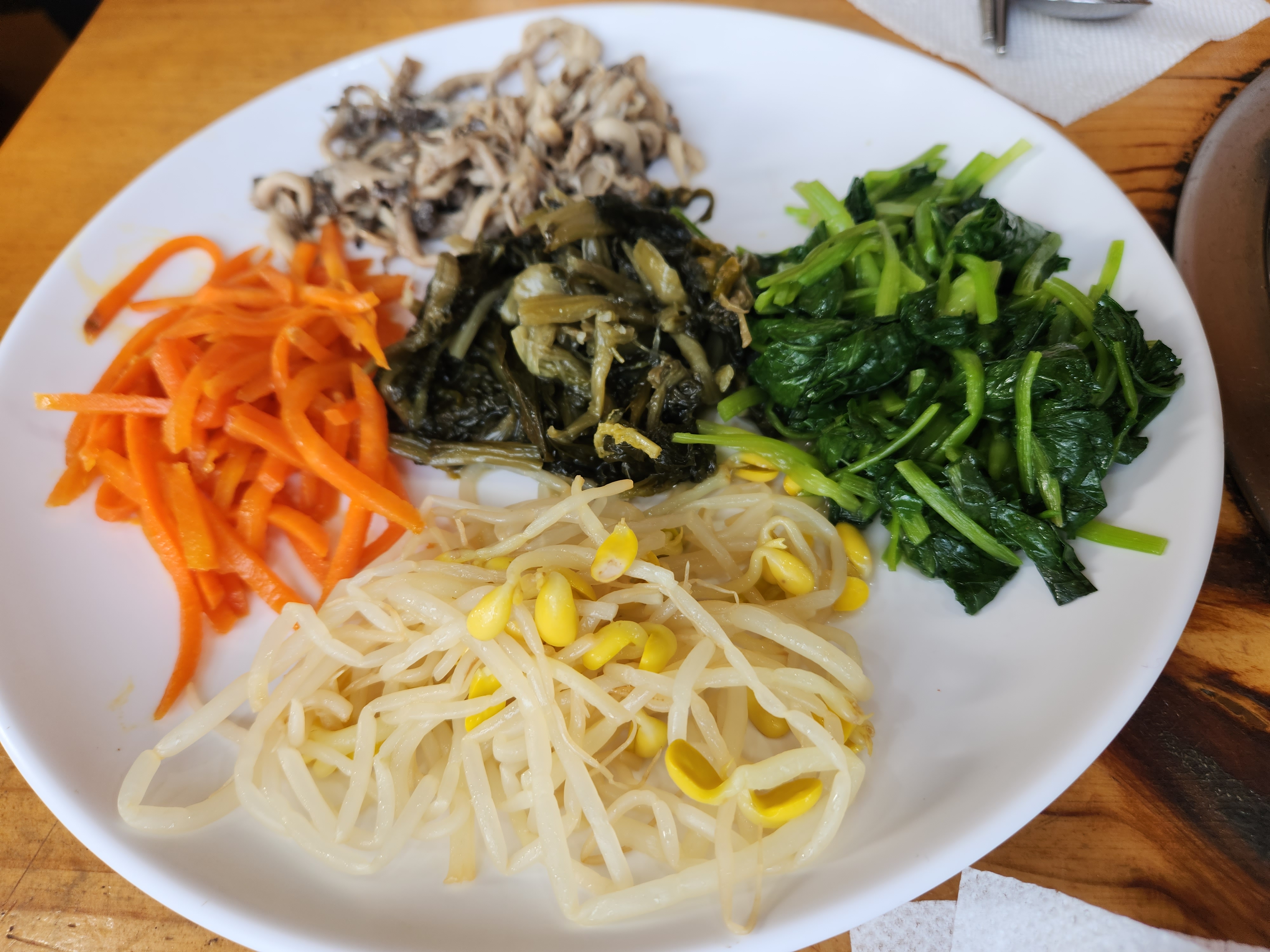 요렇게 야채랑 들기름이랑 넣고 비빈다.