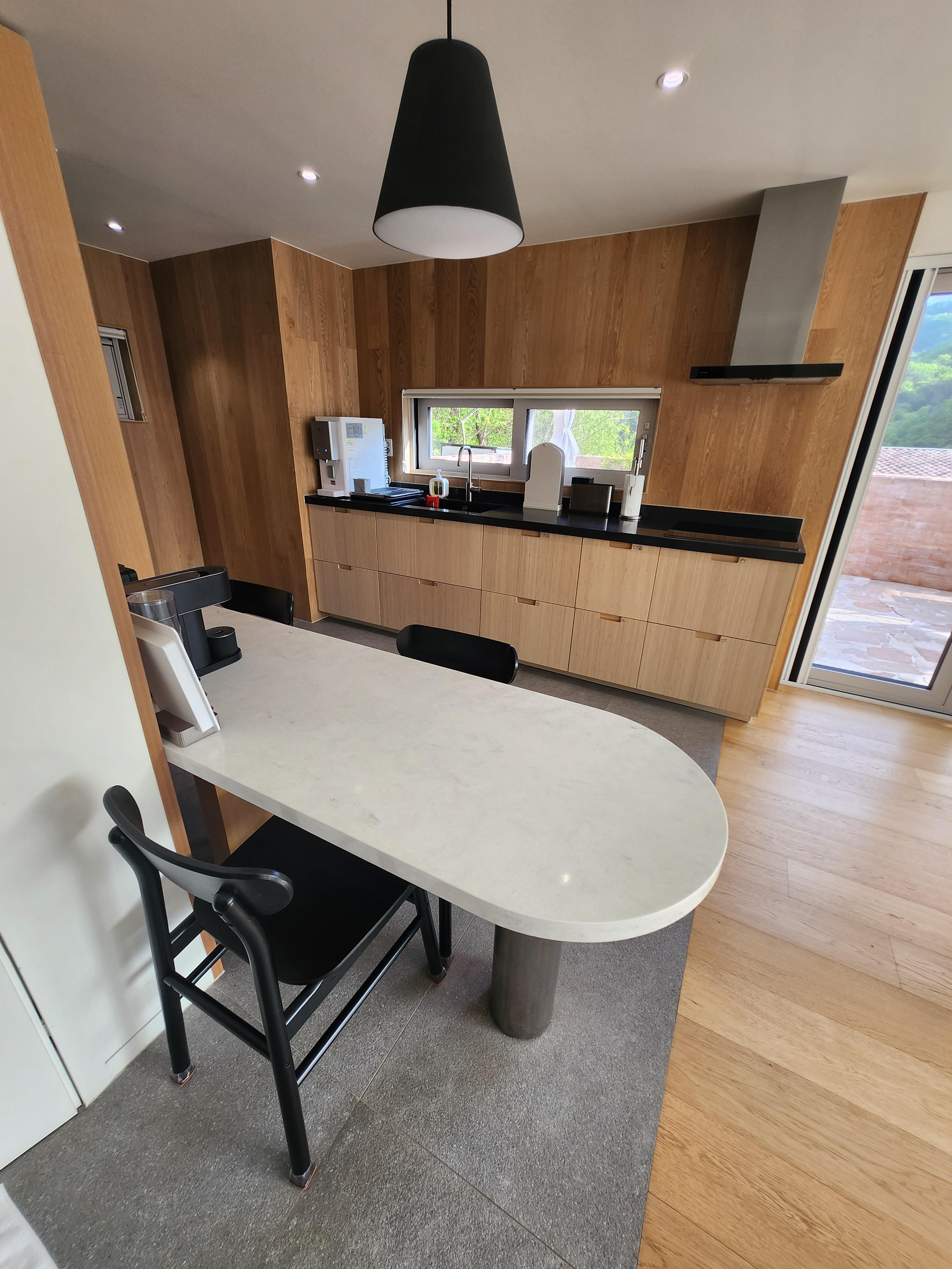 부엌. 식탁이 너무 작아서 불편하다. 3명이 오는 일은 없을 텐데..