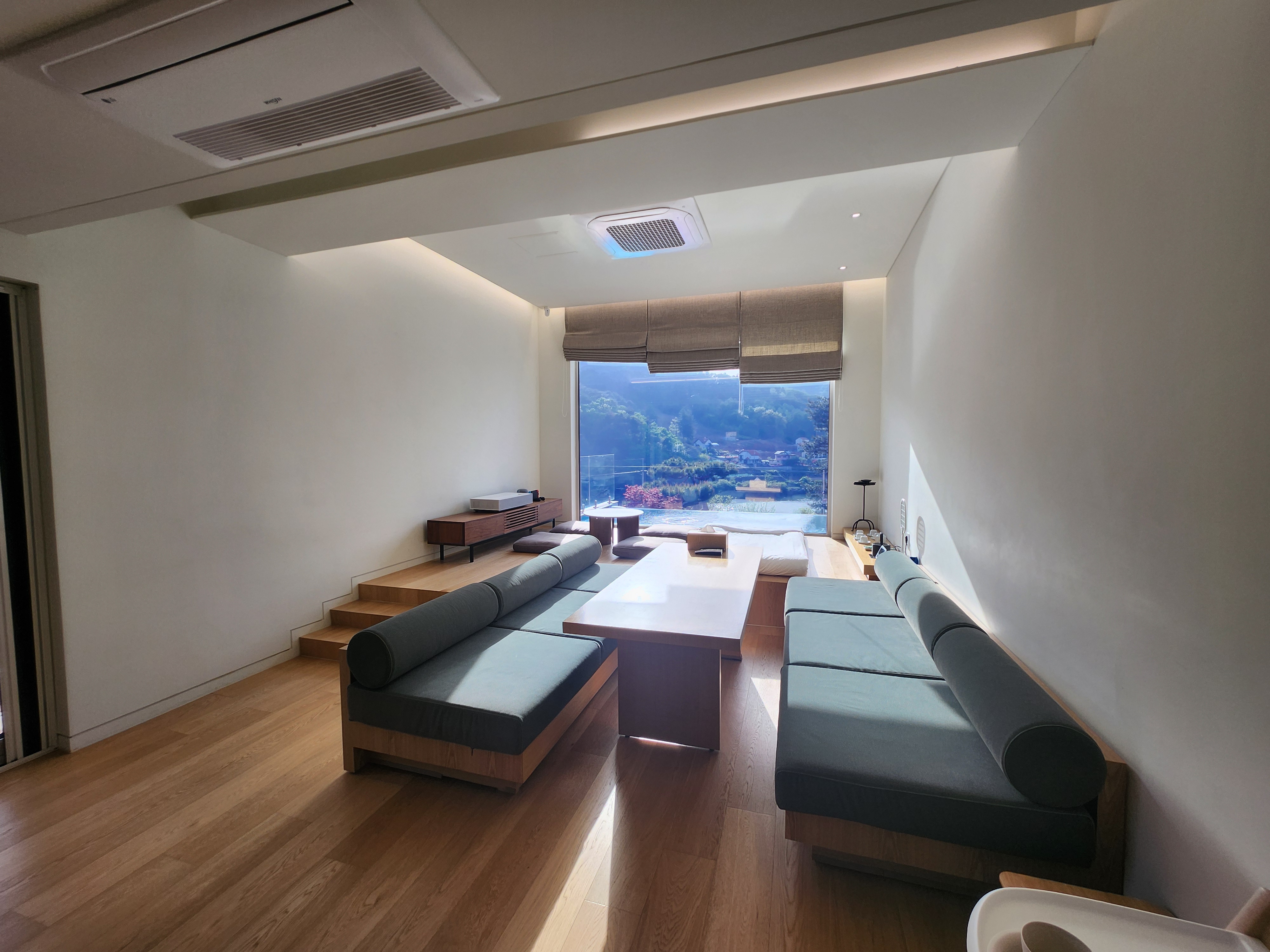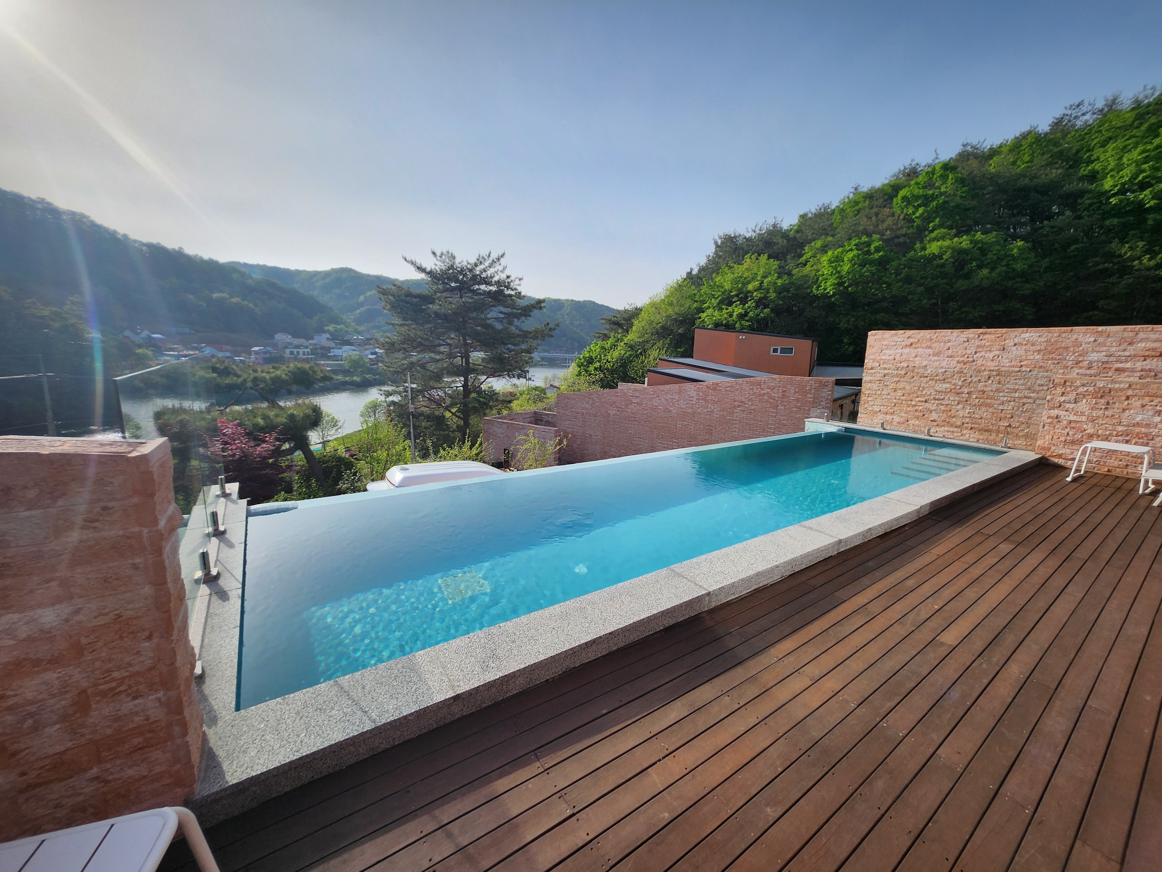거실에서는 수영장이 보이고, 홍천강 뷰가 좋다.