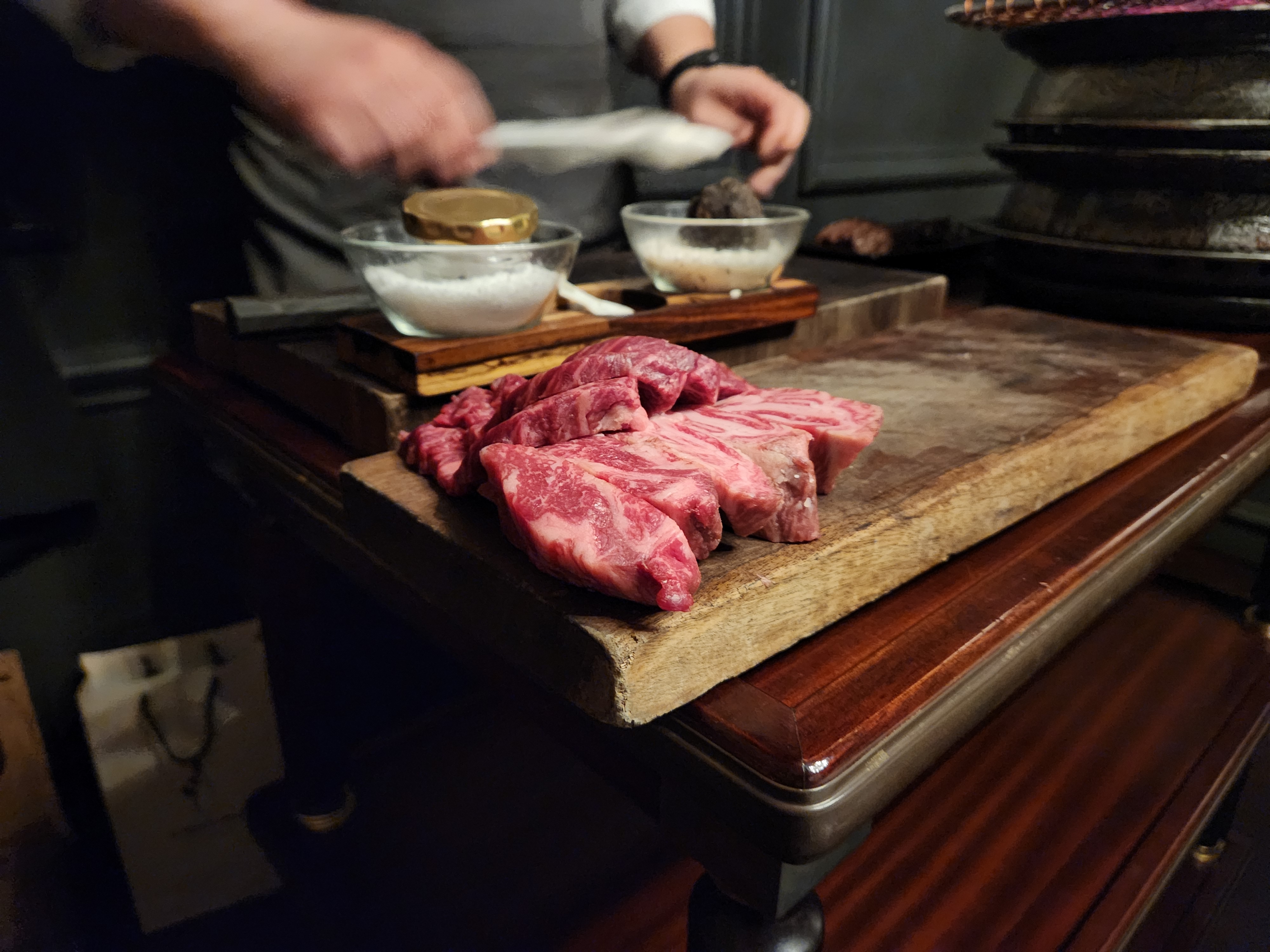 한우 구이. 블랙 트러플.