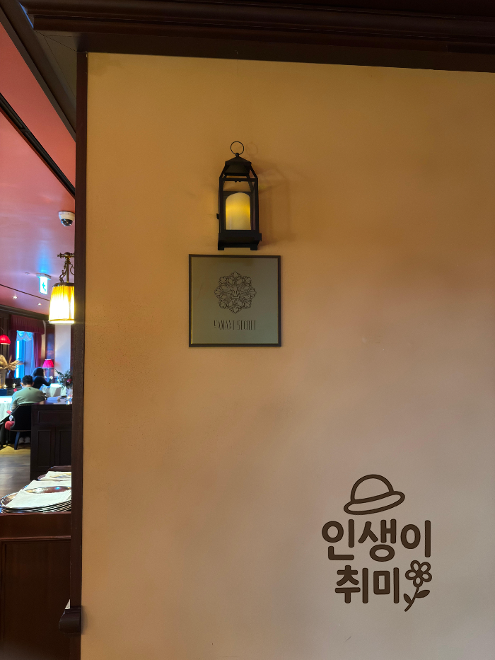 엔틱한 조명과 따뜻한 붉은색 벽면이 어우러져서 굉장히 아늑하면서도 우아한 분위기를 자아냅니다.
