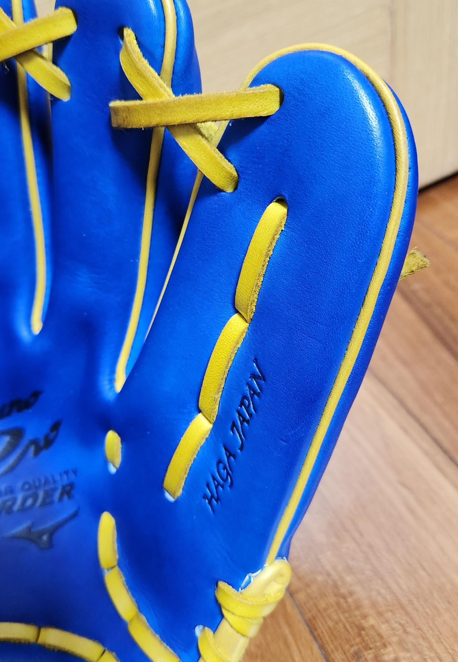 5DNA 모델이라 미즈노 자수가 엄지쪽으로 올라와 있다.