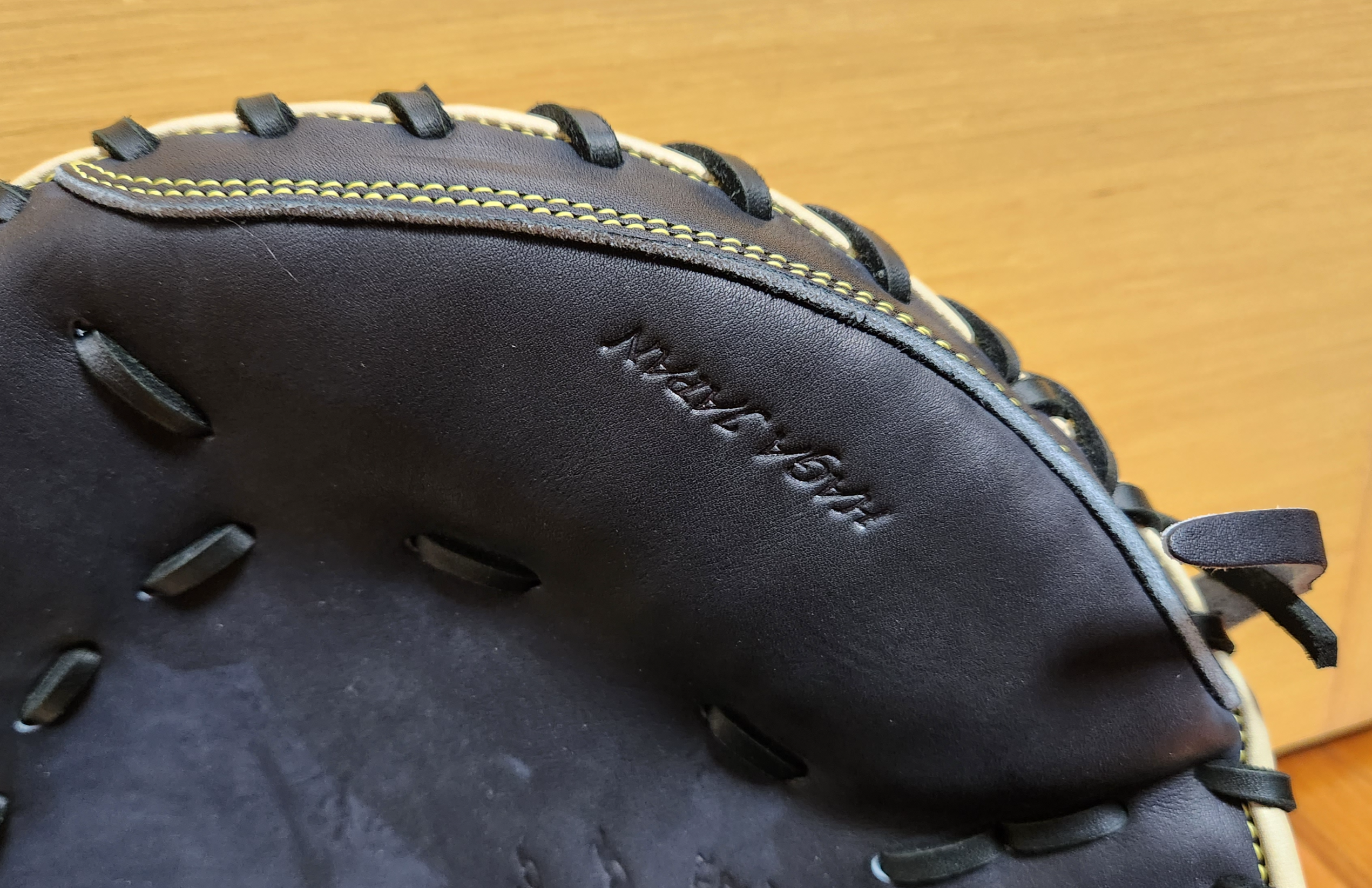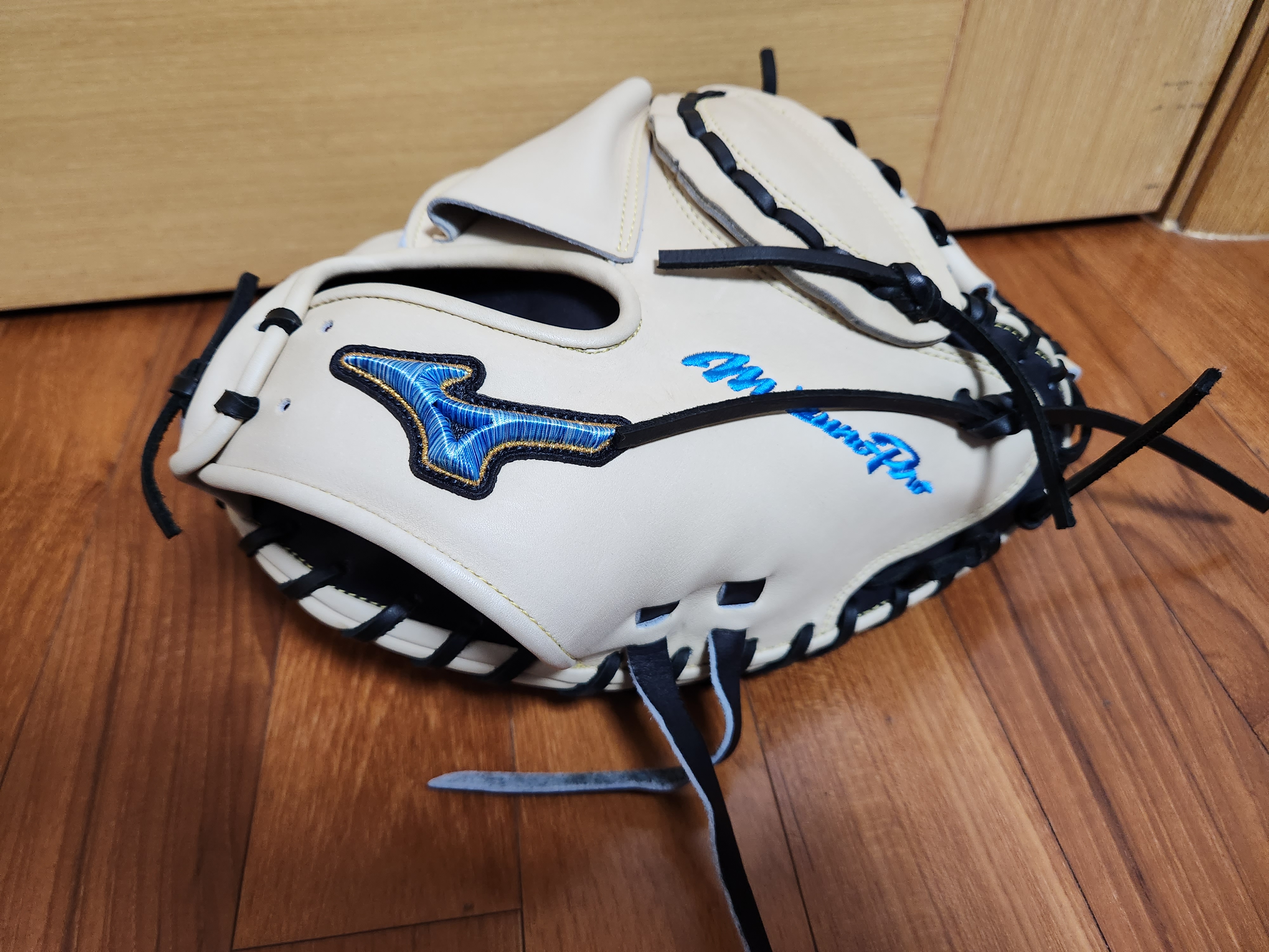 다른 포수 글러브와 다른 형태. 다른 것 보다 이 부분이 차이가 있는게 가장 큰 듯 하다.