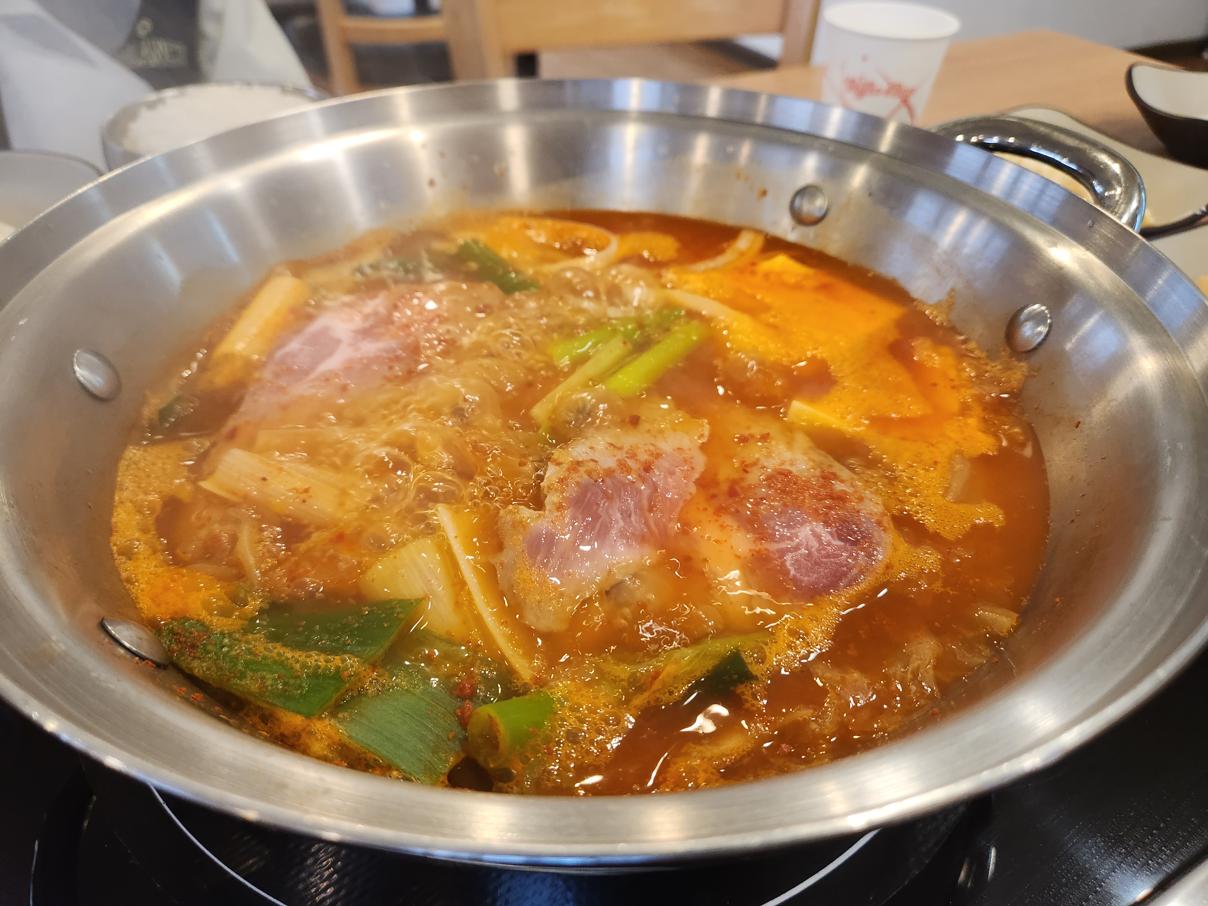 그냥 평범한 김치찌개에 목살이 올라간 듯. 개인적으로는 푹익힌 김치에 좀더 진한 국물이 었으면 좋았을 텐데 약간 아쉽다. 고기도 목살 보다는 갈비나 다른 고기였으면 좀더 특색있지 않았을까 싶다..