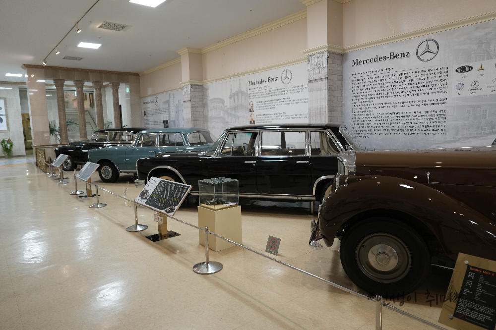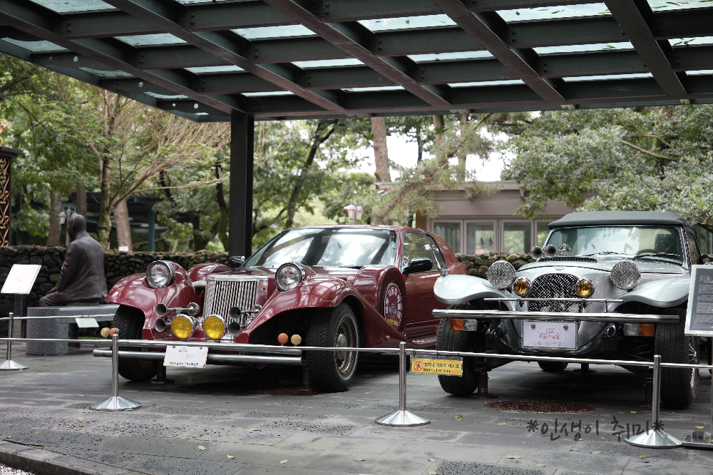 박물관 입구 양옆의 차들.