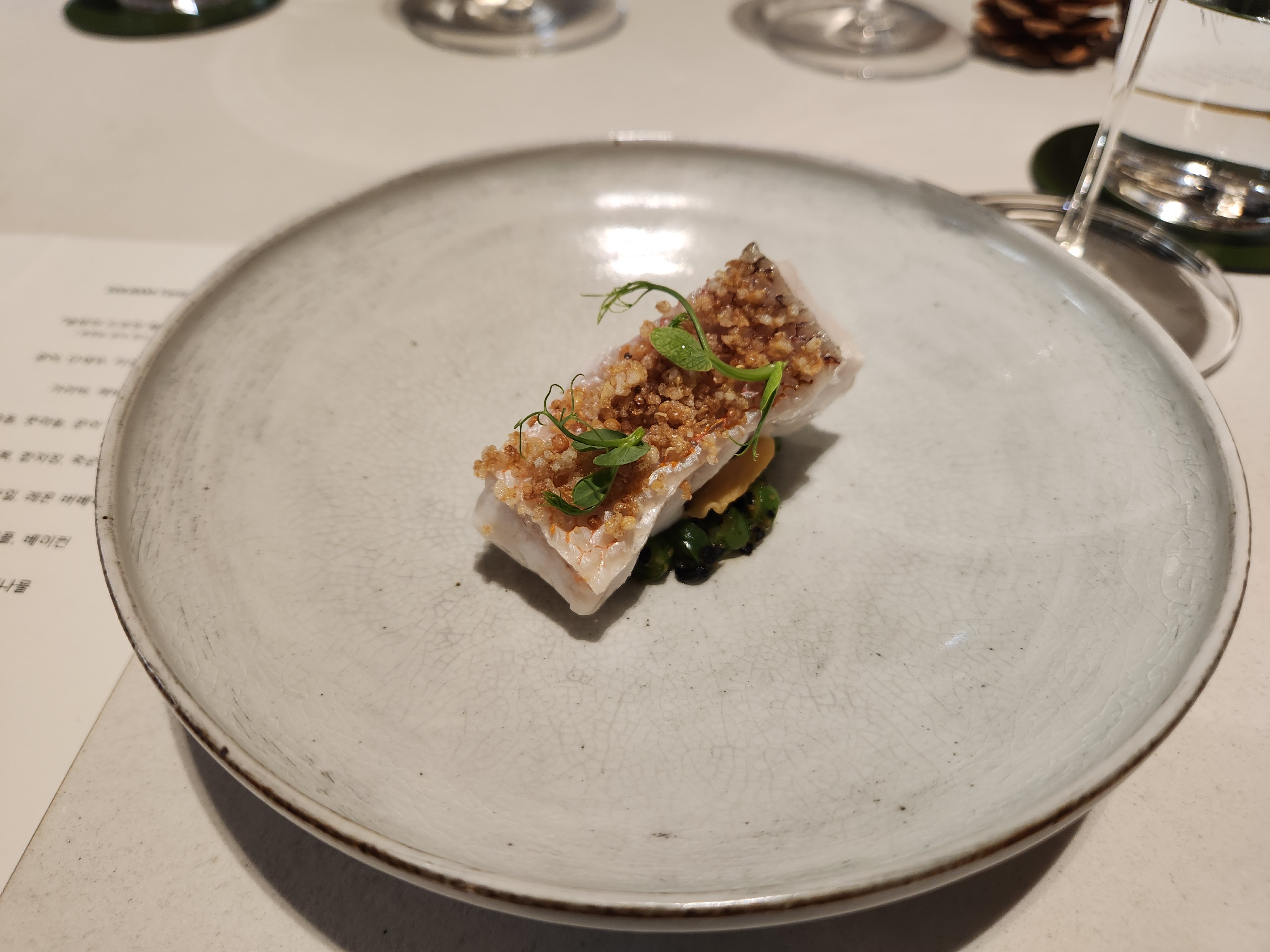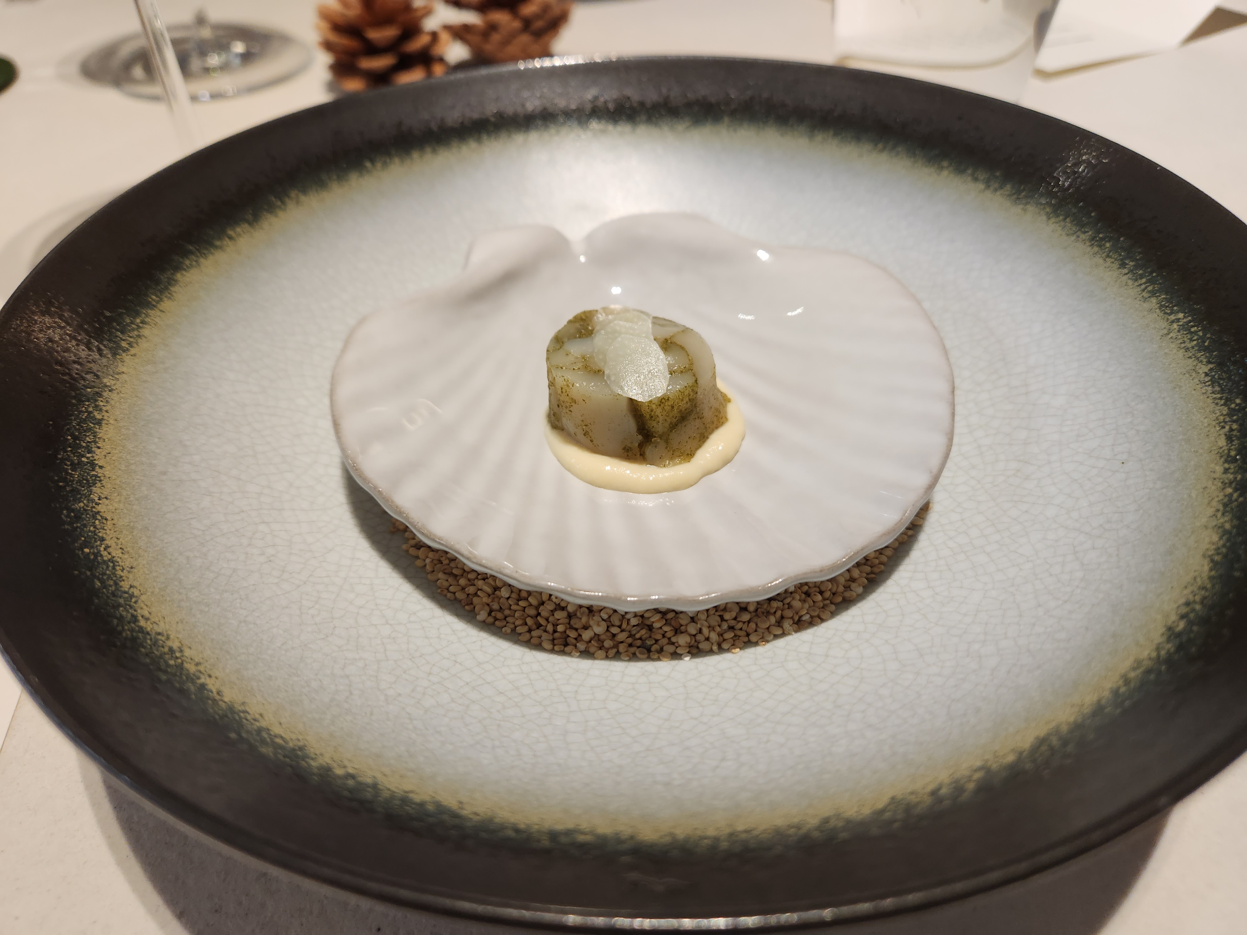 가리비에 캐비어를 올려준다. 뭐에 담근 캐비어라고 했는데.. 근데 요건 좀 잘 안 어울렸다. 가리비가 약간... 내스타일은 아닌 듯..