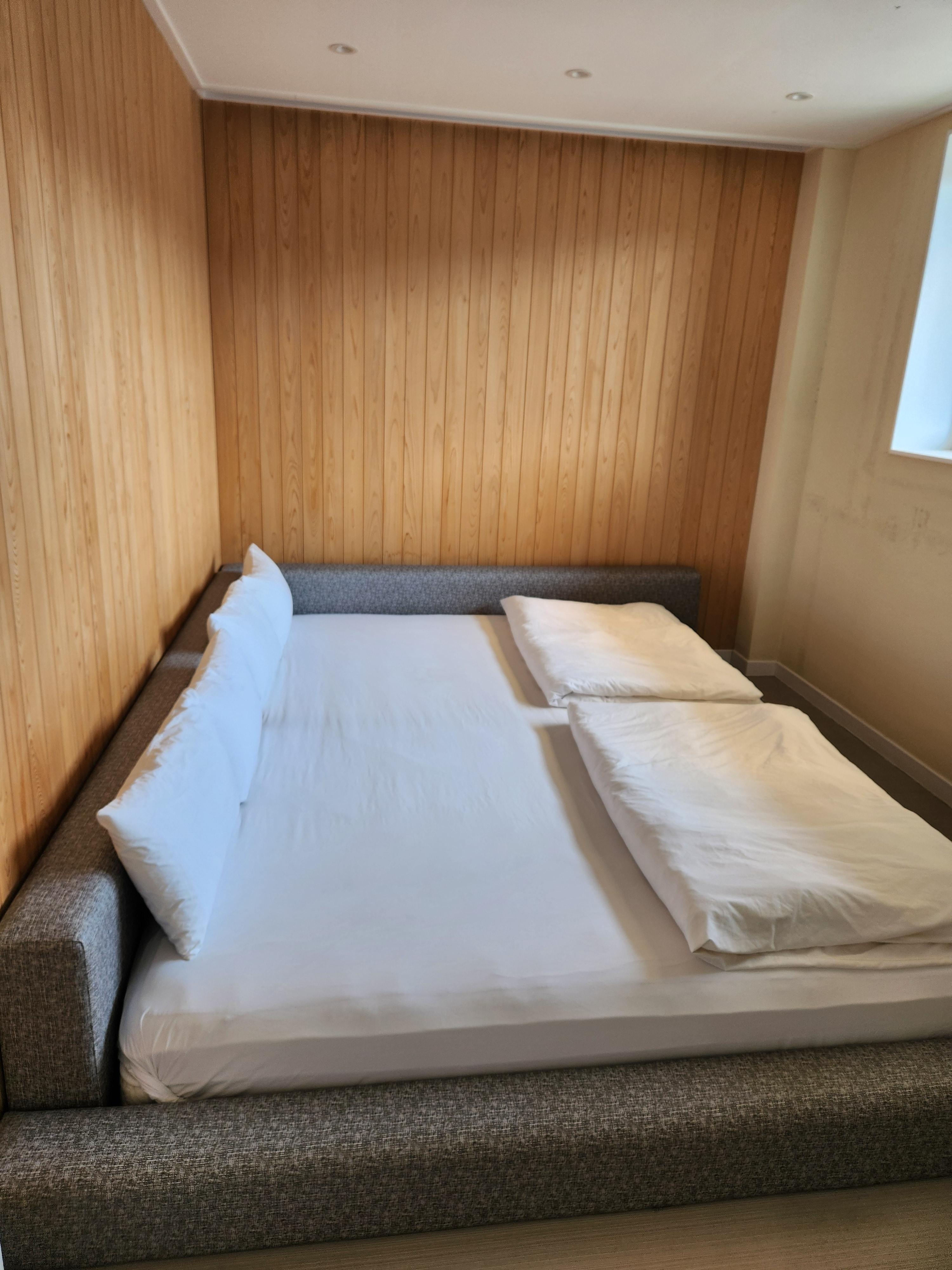 매트리스가 물컹한 것도 문제인데 여기다가 무슨 방수포를 깔아놔서 움직일 때 마다 시끄러워서 잠을 잘 수가 없다. 진심 최악이었다.. 너무 힘들어서 그냥 바닥에서 잠.