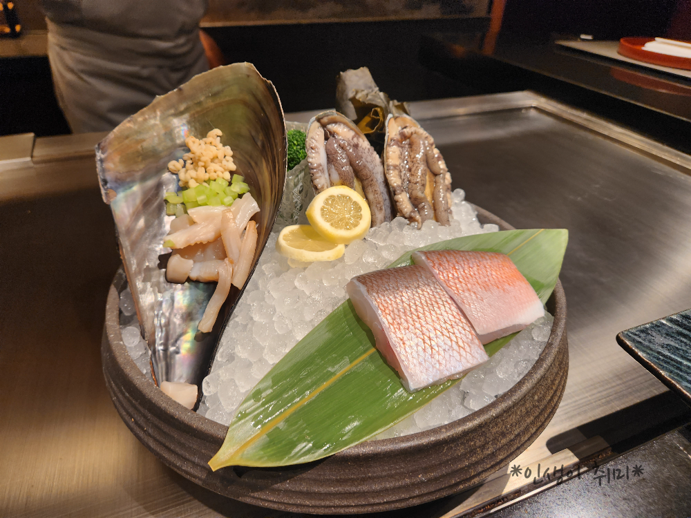가이세키는 일식 + 한식 느낌으로 나오고, 테판야키는 일본식 철판요리라고 생각하면 된다.