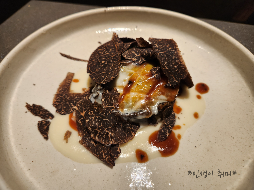 이렇게 익힌 전복을 트러플과 함께 올려준다.. 너무 좋네.