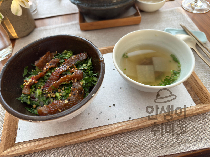 무국이 함께 나와요. 배부른 상태에서 먹기에 부담 없는 양이었고, 국물이 깔끔해서 마무리로 좋았어요.