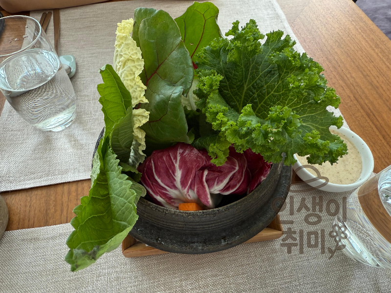 쌈 채소처럼 고기랑 같이 먹으라고 주는 건데, 채소 자체가 싱싱하고 아삭해서 좋았어요.