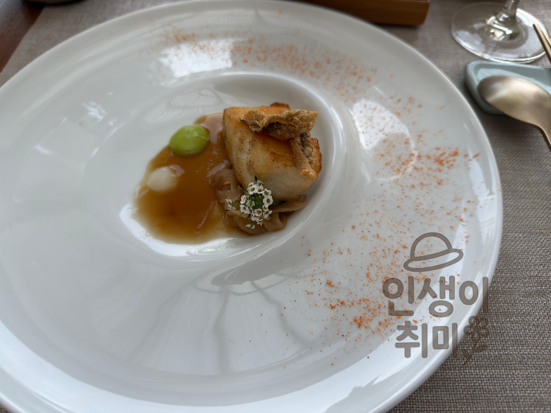 전복이 부드럽게 익어 있고, 소스가 담백하면서도 감칠맛이 있더라고요. 식용 꽃으로 포인트를 준 플레이팅도 예뻤어요.