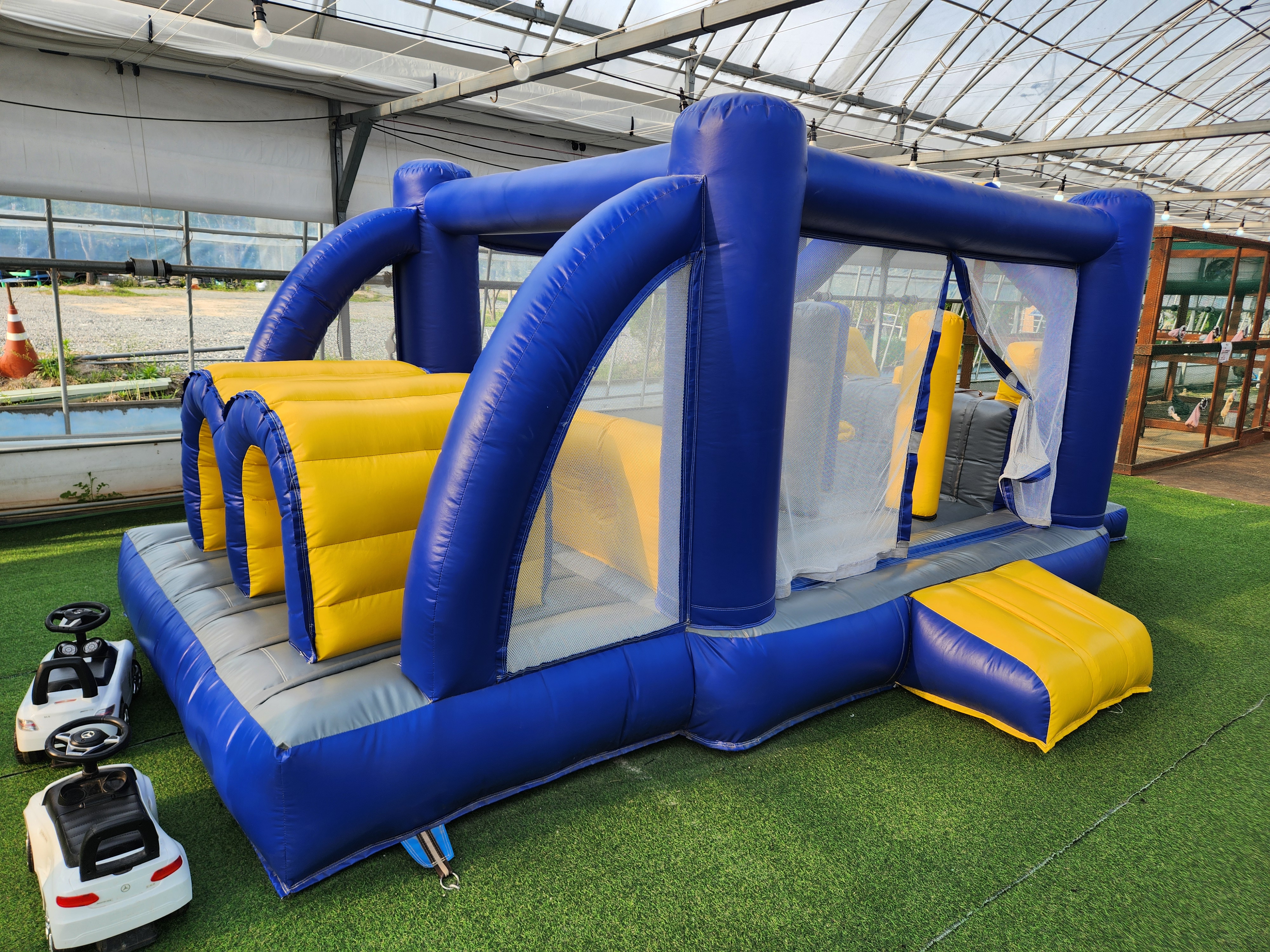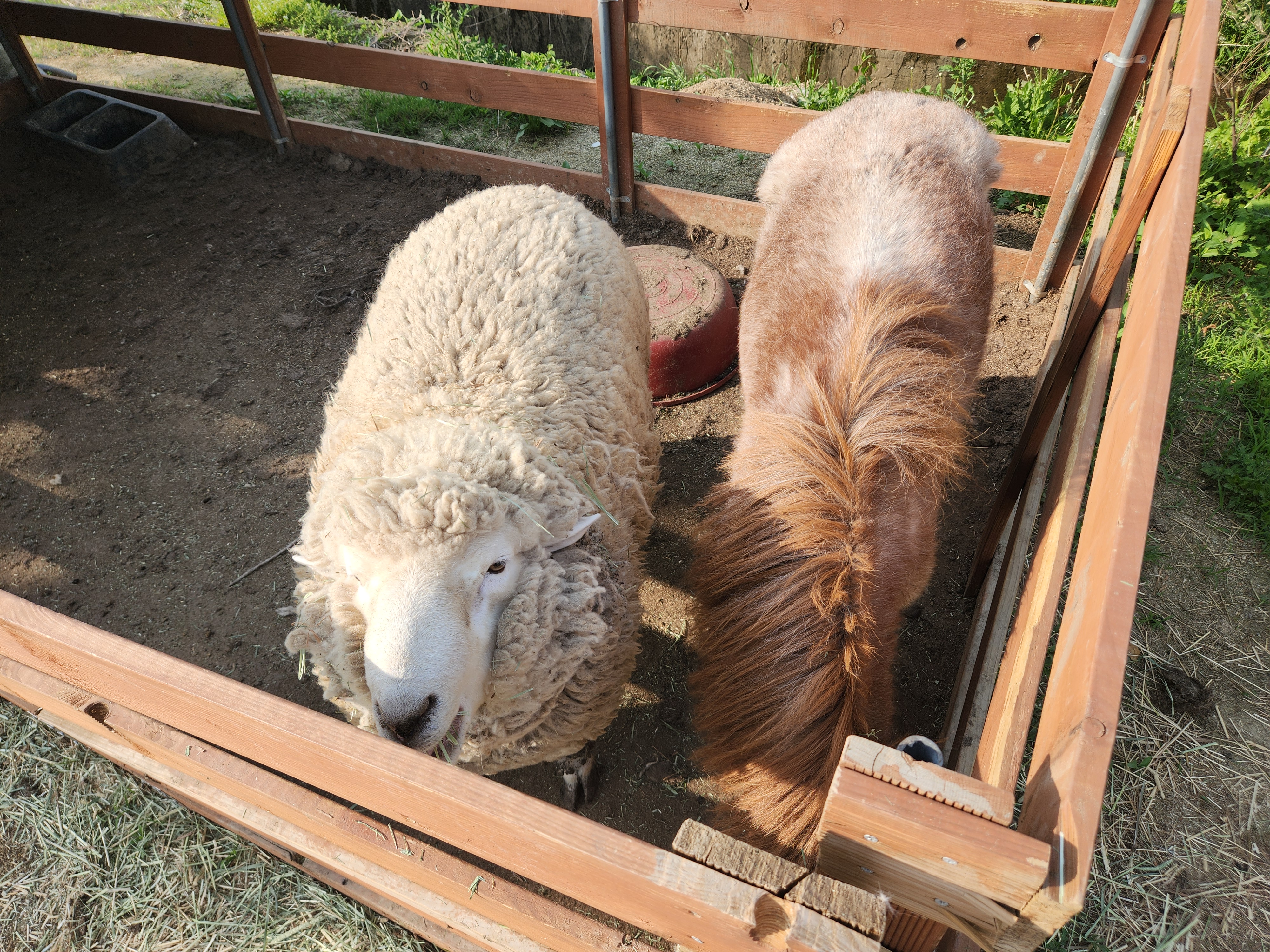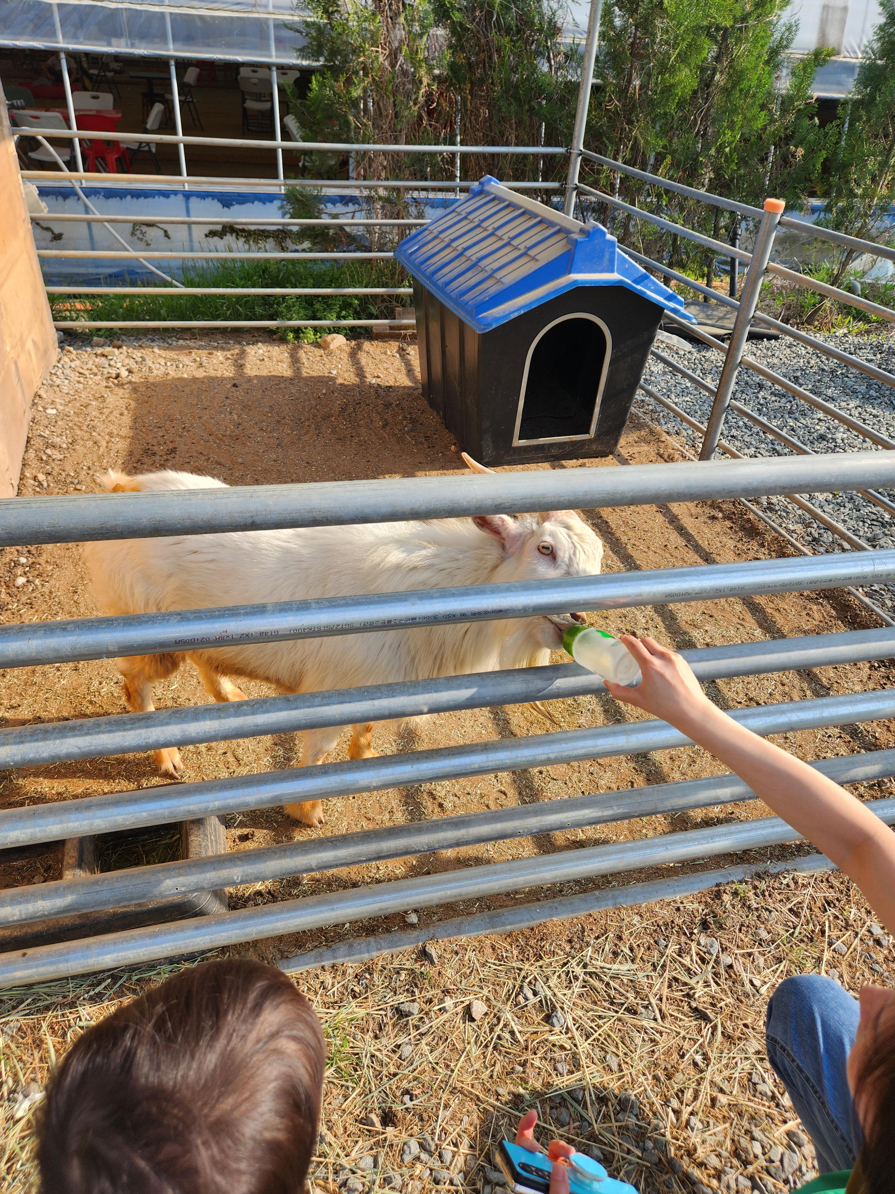 안쪽에는 여러 동물이랑 미끄럼틀과 같은 놀이기구가 있다.