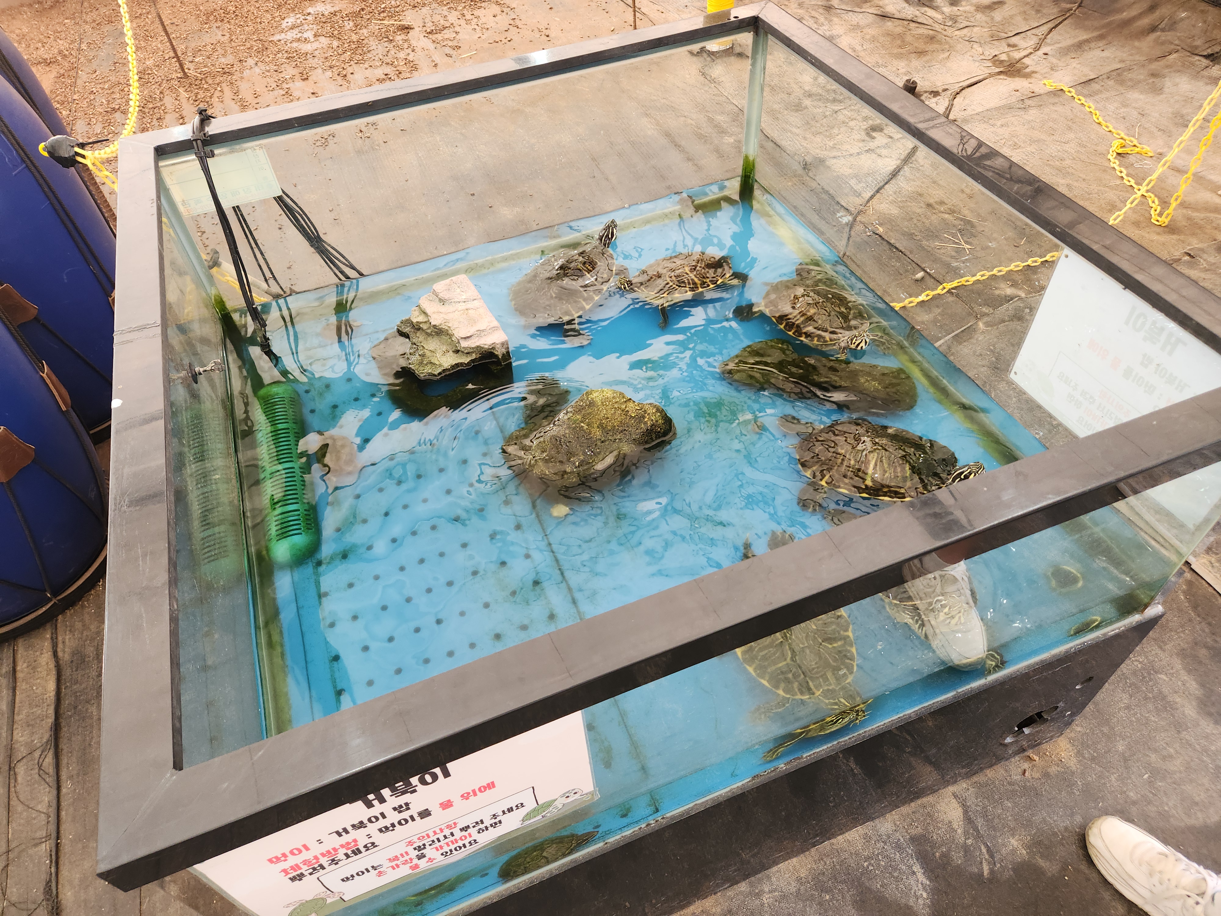 먹이를 줄 수 있다. 먹이는 입구 옆에서 사야한다.