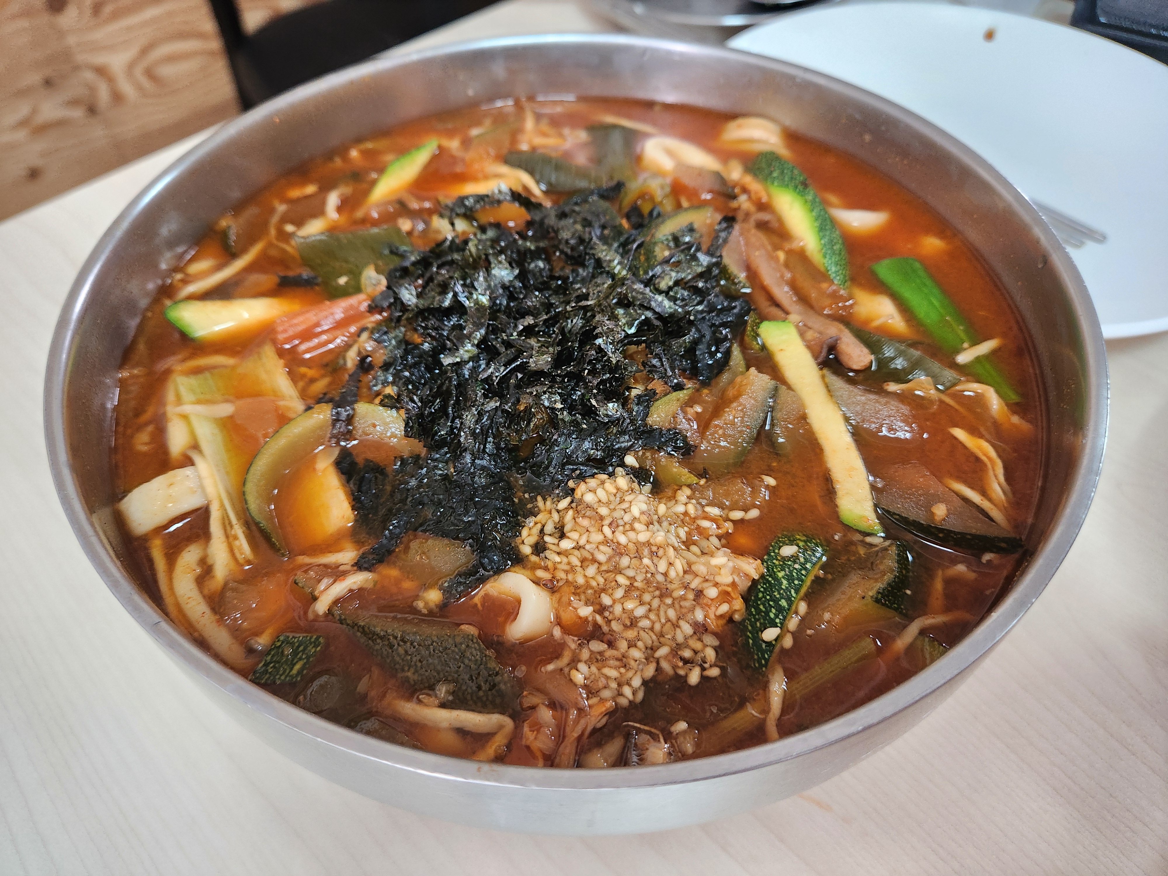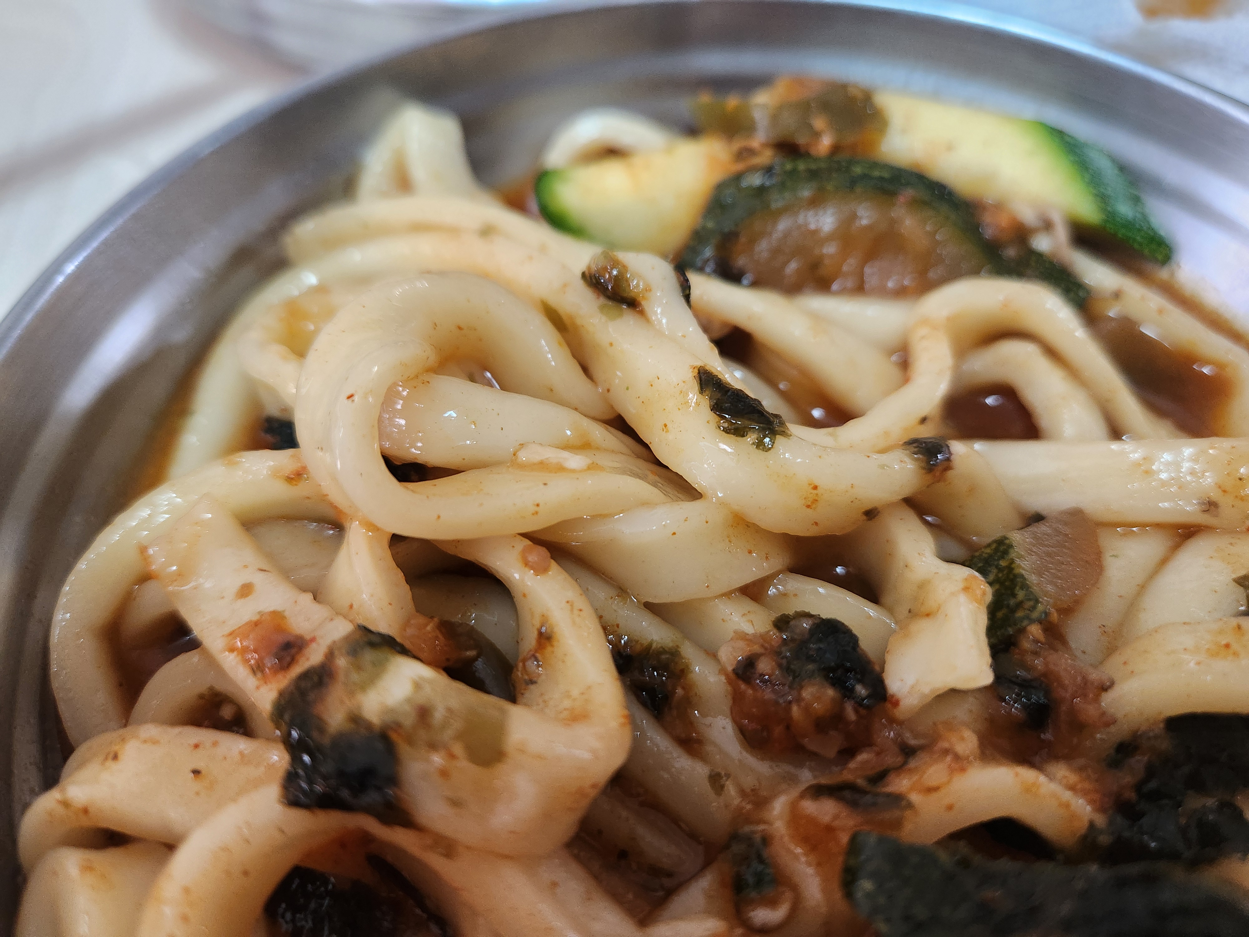면이 두껍고 상당히 쫄깃하다. 약간 매우니 애들은 못먹는다.